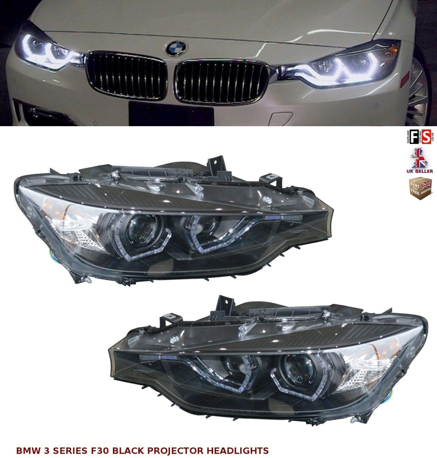 3 Series F30 F31 Black Led Drl Projector Angel Eyes Headlights Lamp 12 15 Amazon Co Uk Car Motorbike